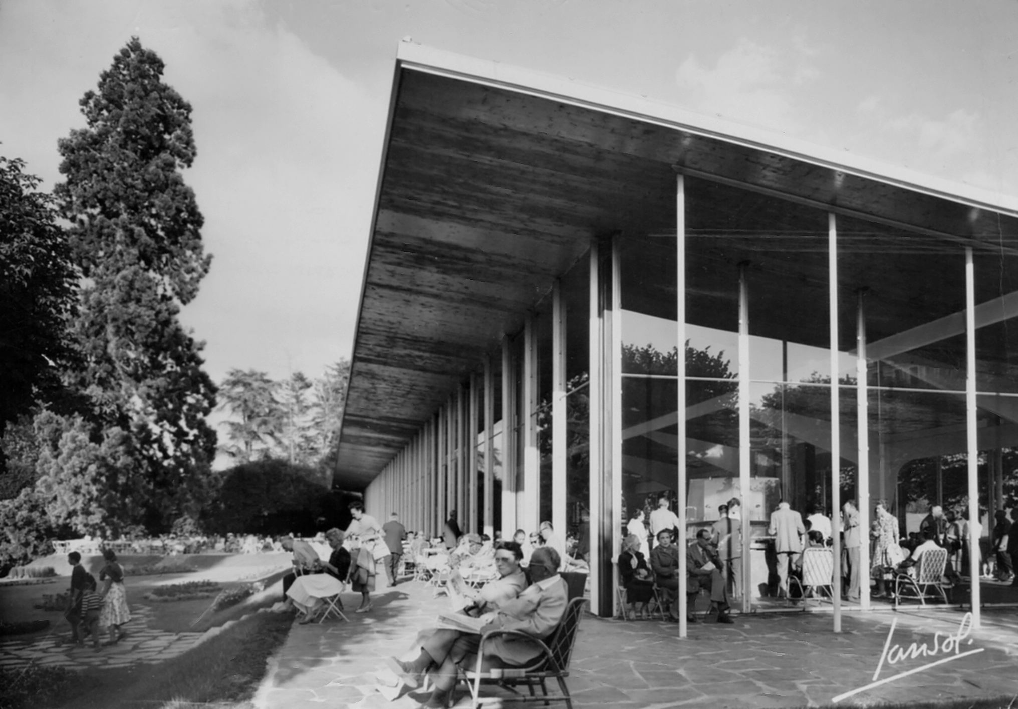 Cachat mineral water pump room, Évian, 1956 (Jean Prouvé, with architect M. Novarina, engineer S. Ketoff). © Fonds Jean Prouvé. Centre Pompidou – MNAM/CCI-Bibliothèque Kandinsky-Dist. RMN-Grand Palais.