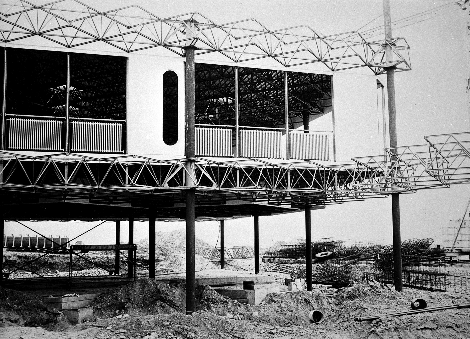 Bron-Parilly University, Lyon, 1972 (R. Dottelonde, architect, Pétroff, engineer). View of the building site. © Fonds Jean Prouvé. Centre Pompidou – MNAM/CCI-Bibliothèque Kandinsky-Dist. RMN-Grand Palais.