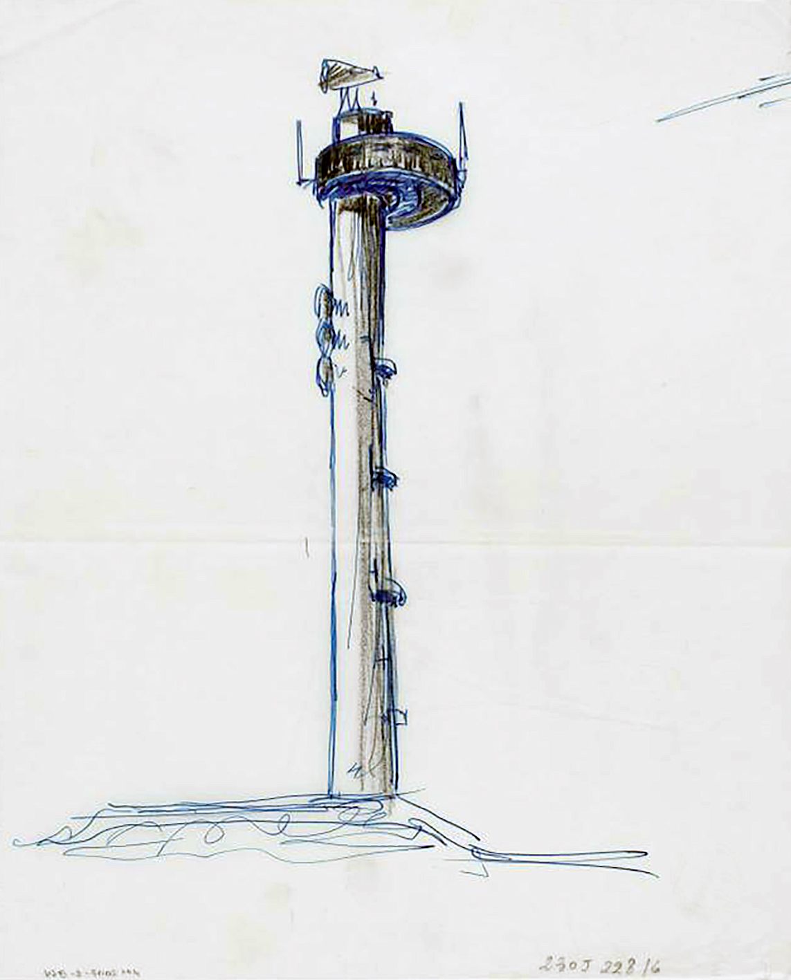 Relay tower, Ouessant, Finistère, 1978–1980 (engineer Jean Prouvé, with architect J.-M. Jacquin and engineer D. Ronsseray). © Centre Pompidou, donation famille Prouvé.